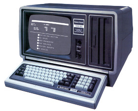 My first serious computer relationship was with the TRS-80 that Lammas Bookstore acquired while I was working there, around 1983. The TRS-80 (the T in TRS is for Tandy, the main inventor, and the RS stands for Radio Shack, which produced and marketed it) was a wildly popular workhorse that introduced hundreds of thousands (millions?) of people to what IIRC were then called microcomputers, to distinguish them from the hulking machines that occupied whole rooms at universities and big businesses.