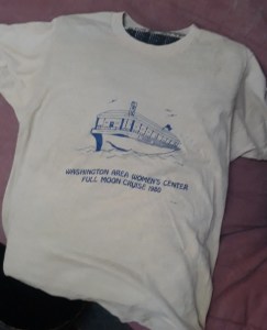 Lesbian Heritage/D.C., devoted to uncovering and preserving D.C.’s lesbian history, grew out of those courses (which IIRC included lesbian literature as well as history). As a result, I learned that, totally unbeknownst to me as a Georgetown U. undergrad, a whole other feminist world had been thriving elsewhere in the city. The feminist newsjournal off our backs got started in early 1970, but I didn’t see my first issue till I moved back to town in 1977. (Oob, as it was usually called, played an important role in my life, and yes, I have a T-shirt to prove it. Coming up soon!)